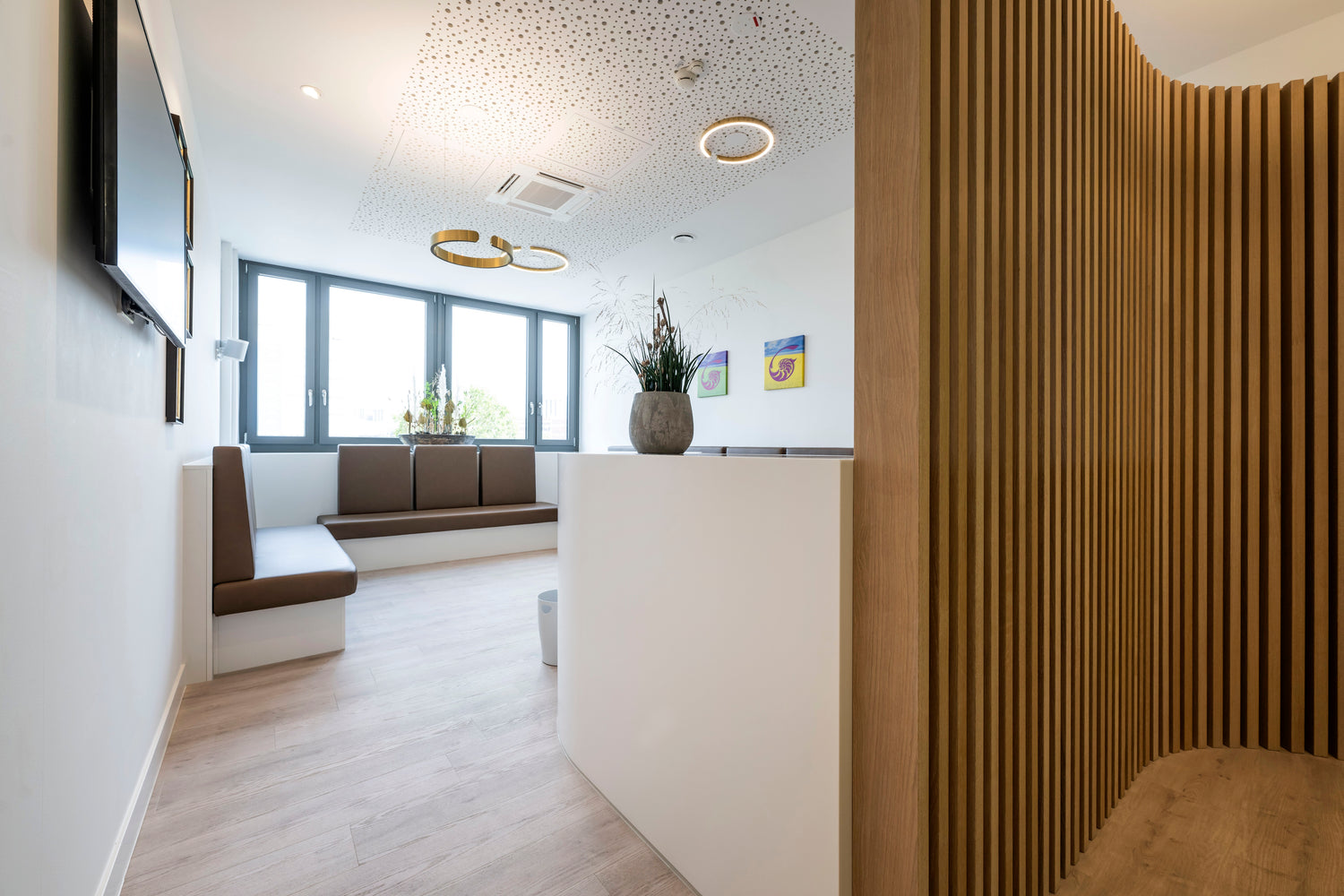 Wartebereiche gestalten wir mit wohnlichem Charakter, klarer Orientierung und langlebigen Materialien. Ob mit Lounge-Elementen, Kinderspielecke oder integrierter Infowand – wir schaffen Räume, in denen man sich willkommen fühlt.