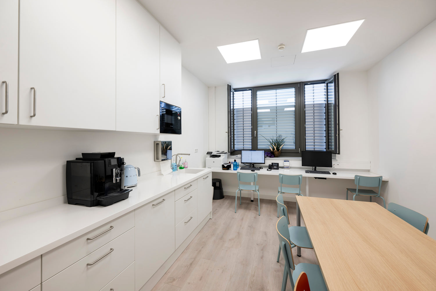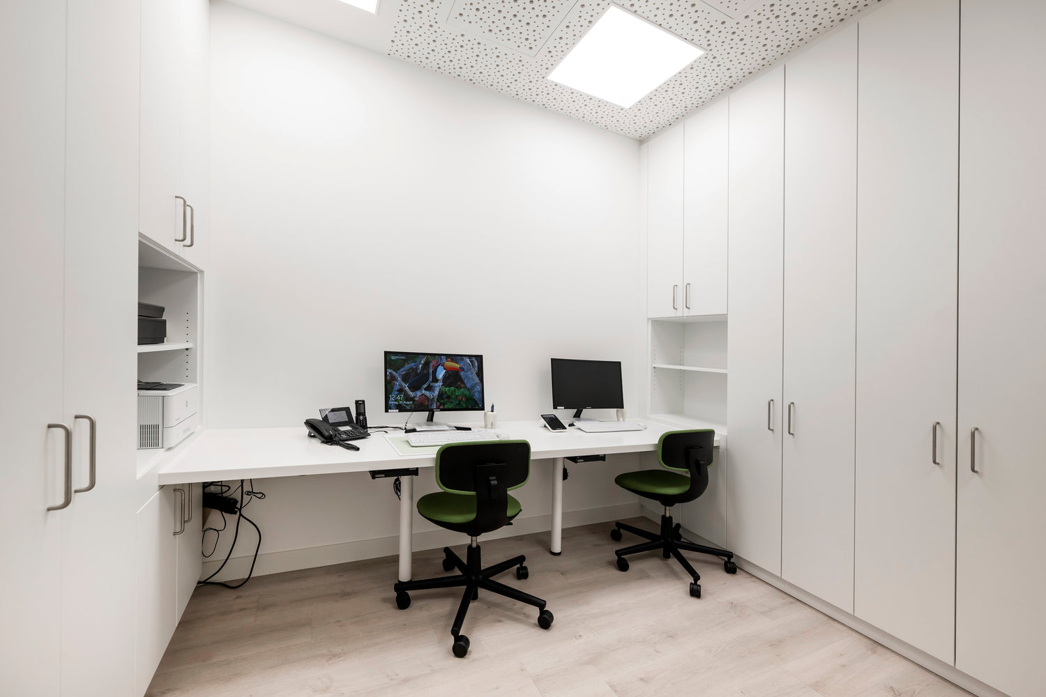 Das Backoffice ist das organisatorische Herzstück jeder Praxis oder jedes Unternehmens. Hier laufen Planung, Verwaltung und interne Kommunikation zusammen – diskret, effizient und gut strukturiert. Wir gestalten Backoffice-Arbeitsplätze mit durchdachten Stauraumlösungen, ergonomischen Arbeitsflächen und moderner Technik-Integration – abgestimmt auf Raumgröße, Abläufe und Mitarbeiteranzahl.