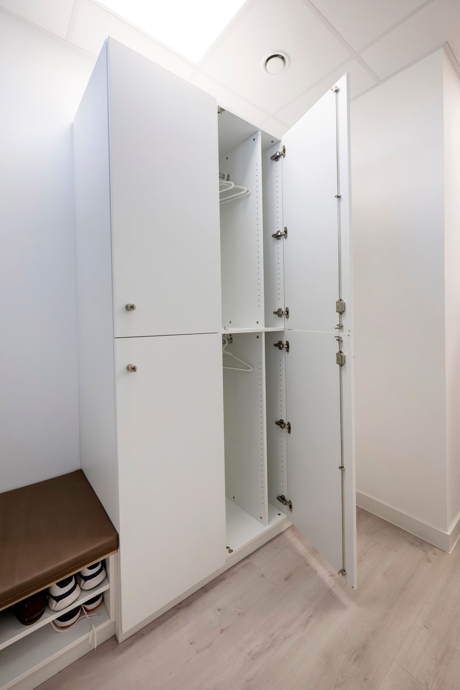 Ob für Mitarbeiter, Patienten oder Kunden – gut geplante Umkleideräume sorgen für Struktur, Ordnung und Diskretion. Wir realisieren maßgefertigte Lösungen mit robusten Materialien, pflegeleichten Oberflächen und cleveren Details wie Spindsystemen, Sitzbänken, Garderobenhaken oder verschließbaren Fächern.